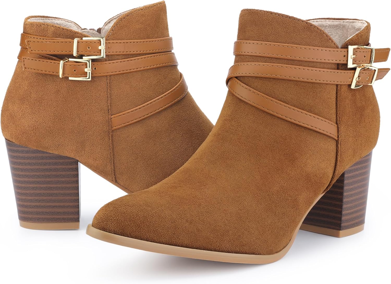 Allegra K Women's Strappy Pointed Toe Buckle Chunky Heel Ankle Booties