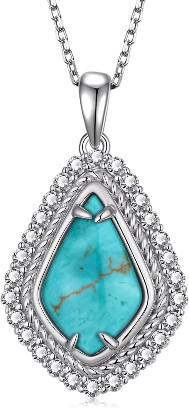 925 Sterling Silver Real Turquoise Necklace for Women – Western Turquoise Jewelry – Native American Style Pendant