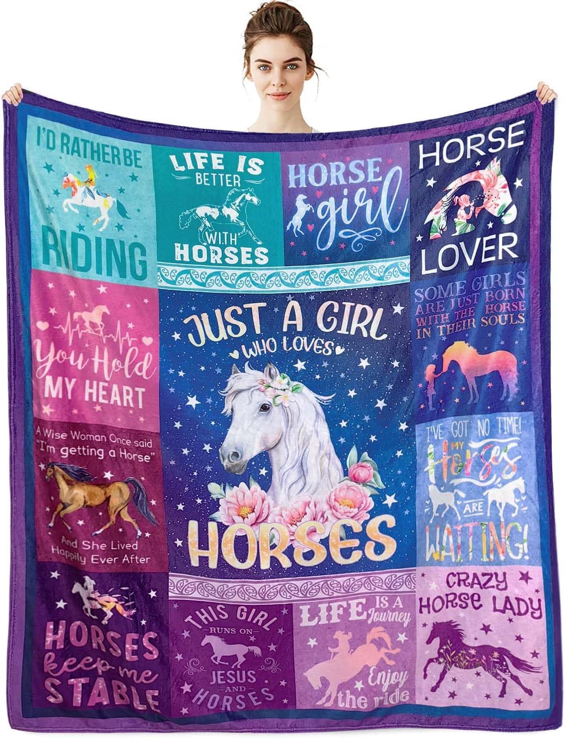 Metawu Horse Gifts for Kids Girls Women Throw Blankets, Cute Horse Pattern Flannel for Couch Sofa Bed Chair Decor, 50 x 60 inch