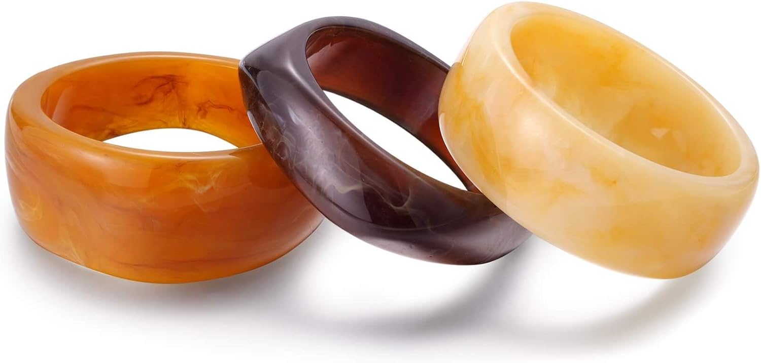 Kvekstio Chunky Resin Bangle Set for Women – 3 Pack Irregular Wide Acrylic Marble Bracelets, Bold Statement Jewelry for Boho Retro Style, Minimalist Stackable Brown Accessories for Mom Wife Daughter