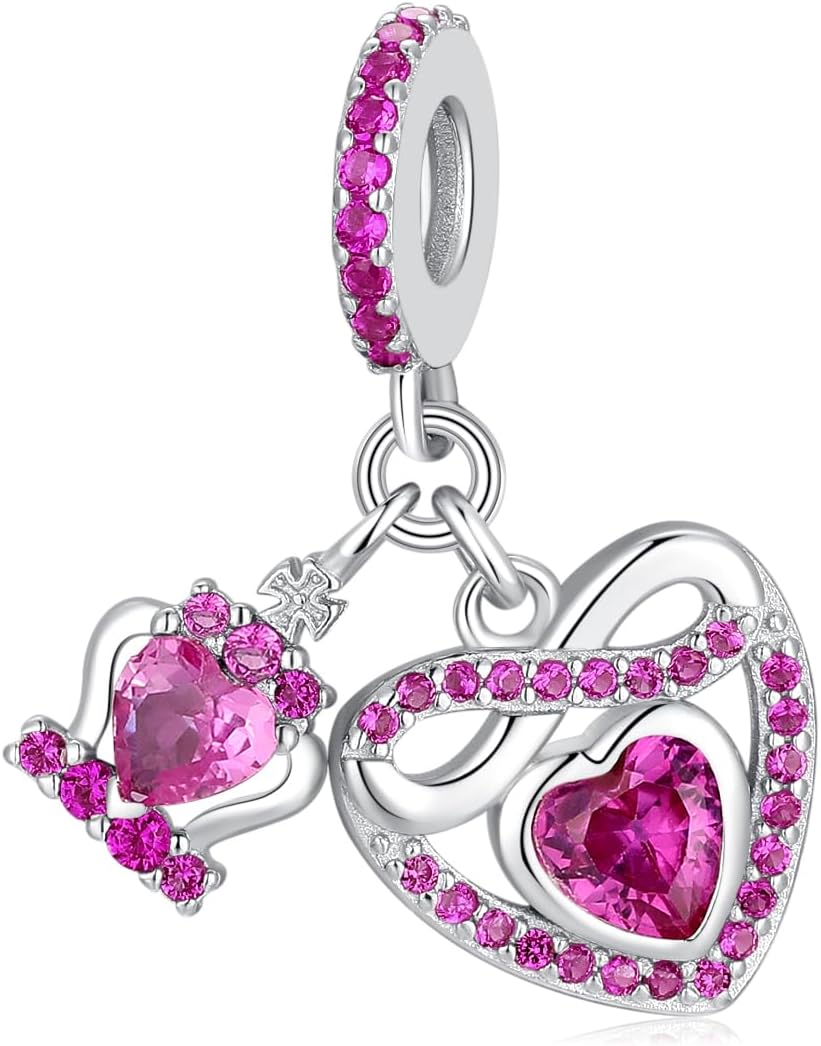 Birthstone Charms for Pandora Charms Bracelets - 925 Sterling Silver Infinity Heart Dangle Charm fit Bracelet and Necklace Birthday Jewelry Gifts For Women