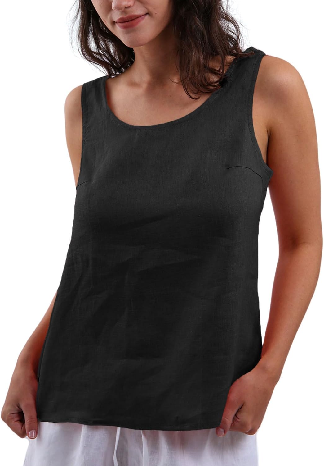 Amazhiyu Women's 100% Linen Tank Tops Summer Casual Sleeveless Scoop Neck Blouse