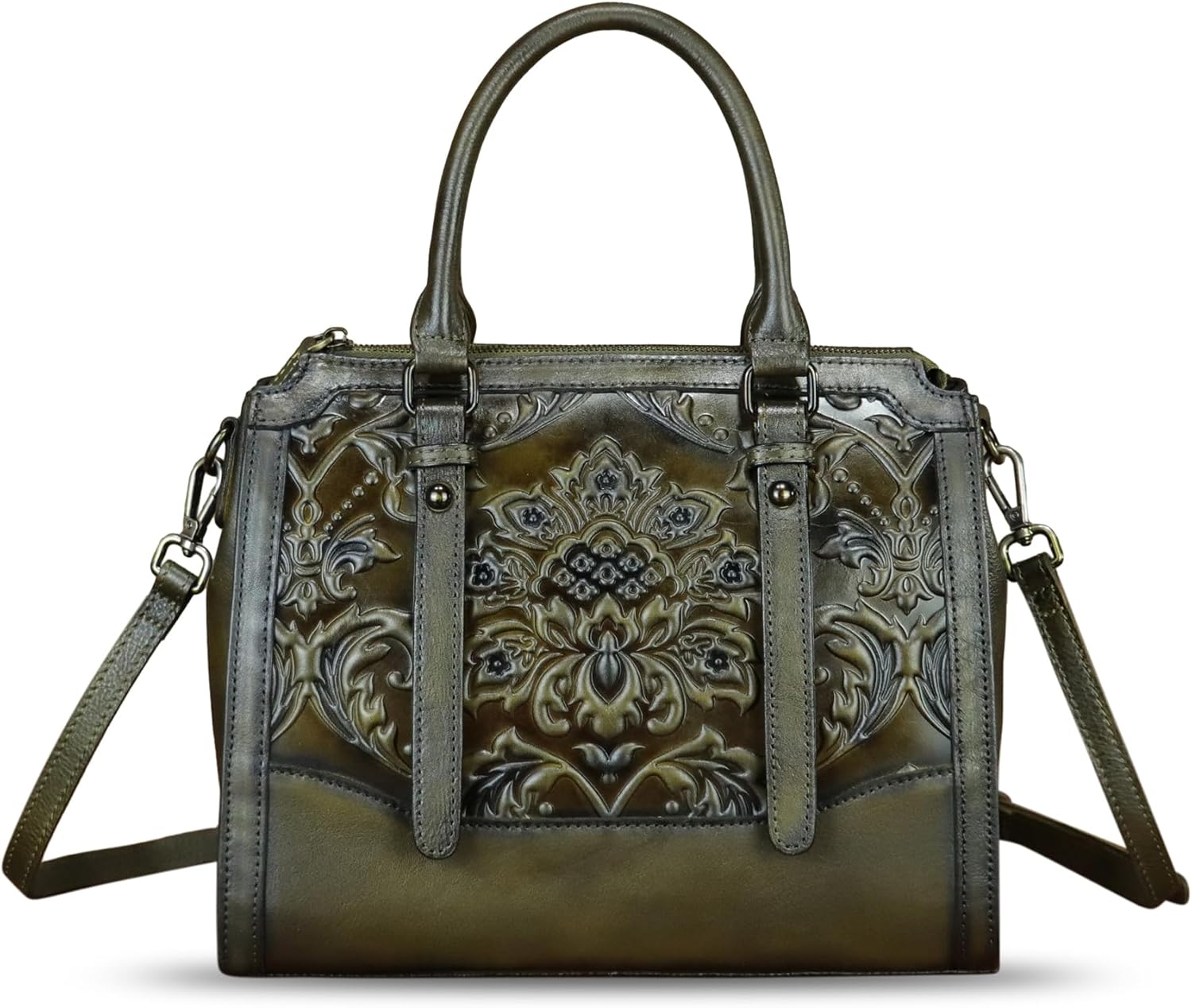 Genuine Leather Purses and Handbags for Women Vintage Embossed Leather Satchel Bags Crossbody Shoulder Bag Strap