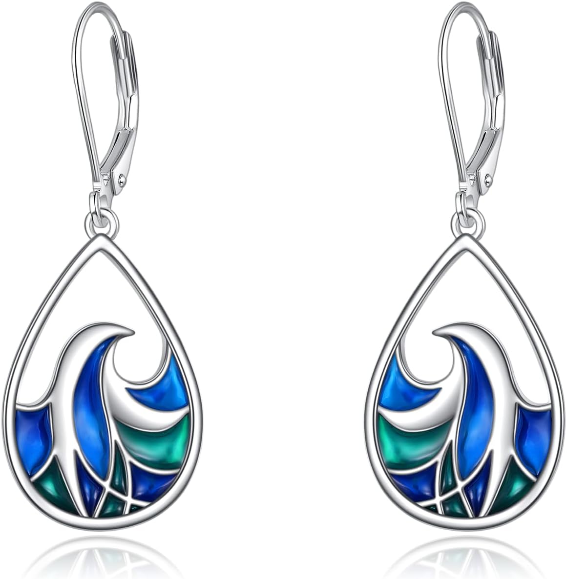 925 Sterling Silver Wave Leverback Dangle Earrings Enamel Leverback Earring Jewelry for Women Birthday Gifts