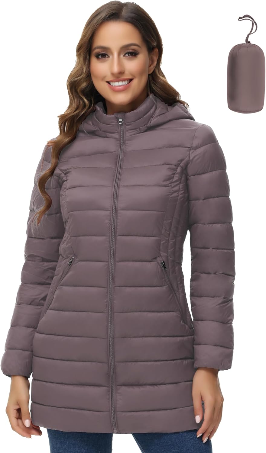 ROYAL MATRIX Women's Packable Puffer Jacket Lightweight Puffer Coat with Hood Long Winter Warm Travel Puffer Jackets