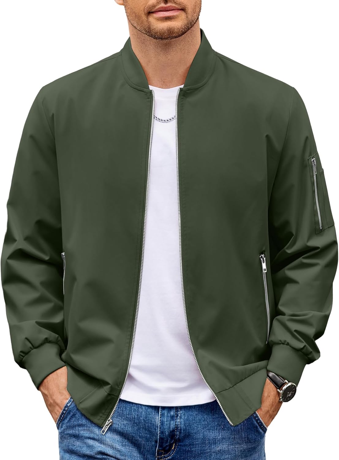 COOFANDY Men Bomber Jacket Lightweight Casual Windbreaker Zip Up Coat Fashion Stylish Fall Jackets with Pocket