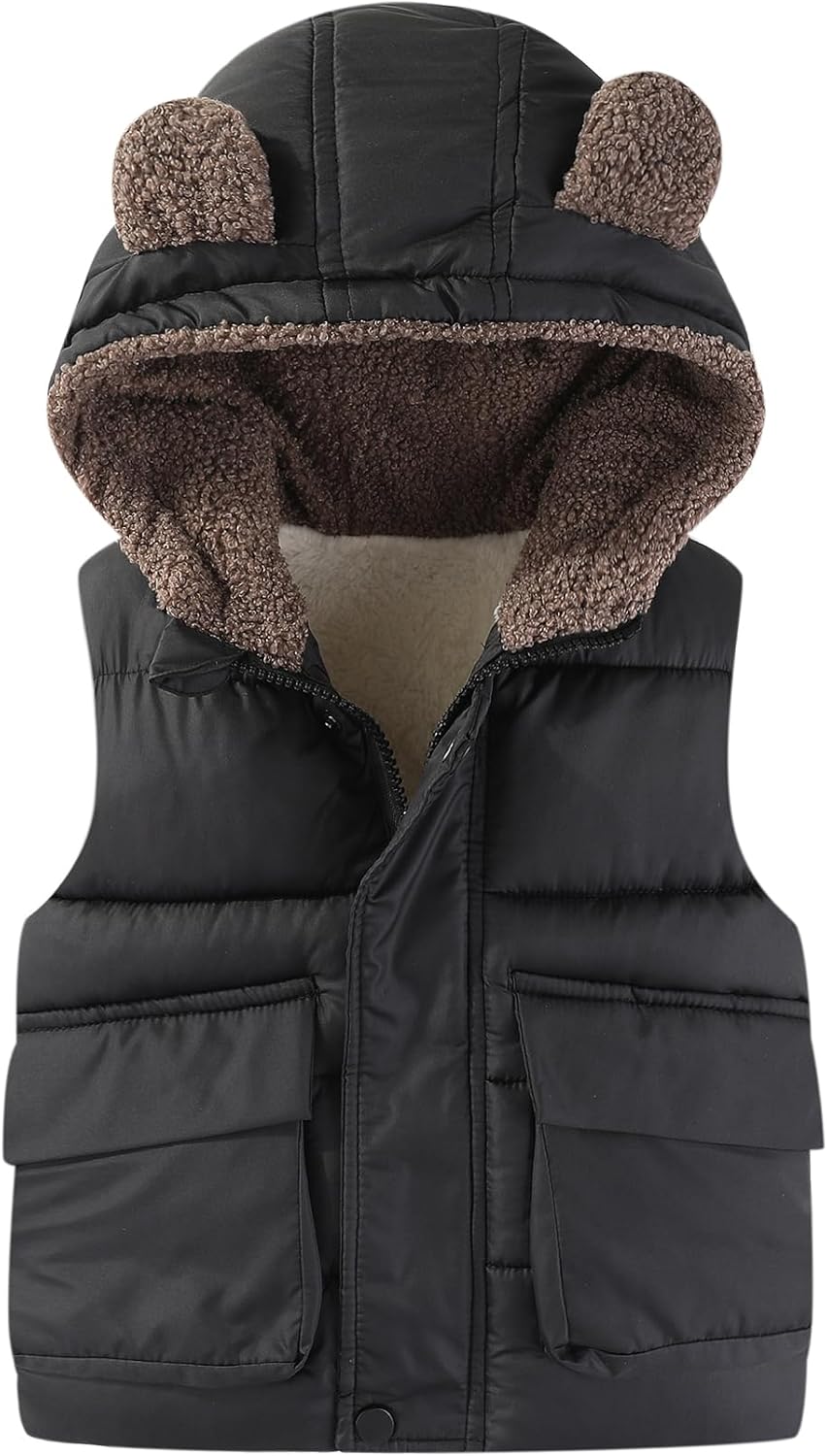 AIWUHE Toddler Boys Girls Hooded Puffer Vest Padded Warm Winter Jacket Sleeveless Bear ears Zipper Up Coat with pocket 1-7Y