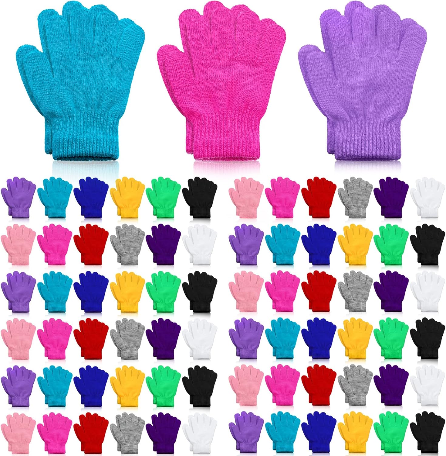 Jeyiour 100 Pairs Children's Winter Gloves - Bulk Kid's Warm Full Fingers Stretchy Knitted Gloves for Boys & Girls - Christmas Gifts
