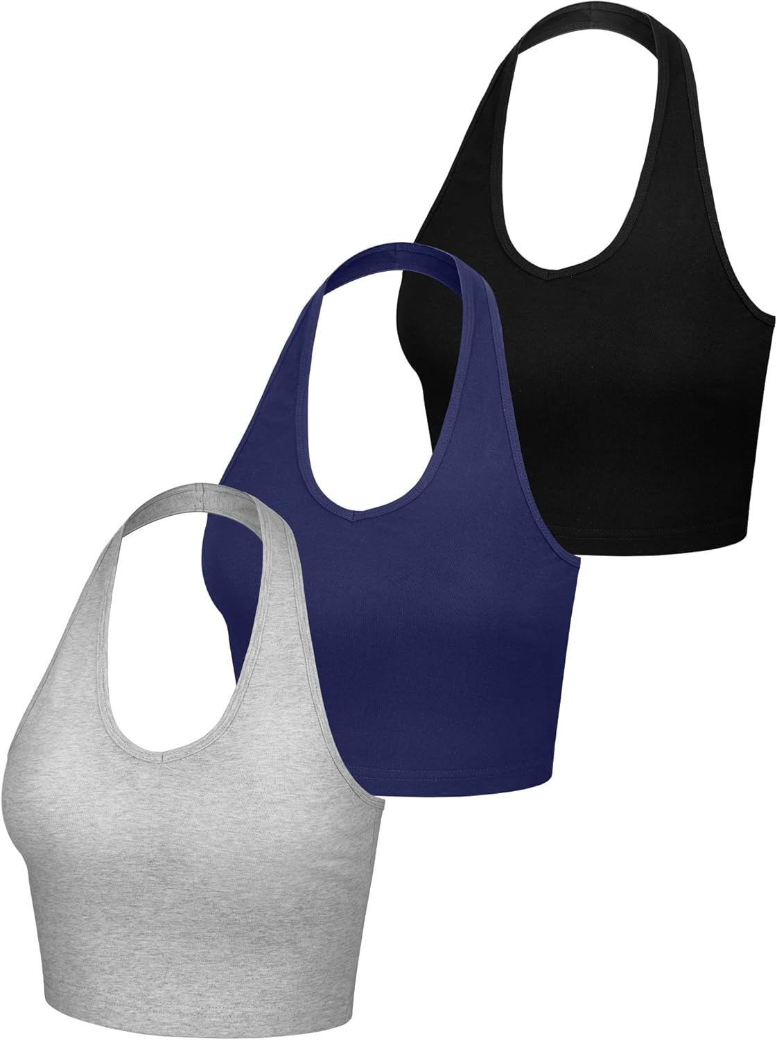 Bencailor 3 Pieces Women Halter Top Backless Scroop Neck Deep V Neck Crop Workout Tops for Women