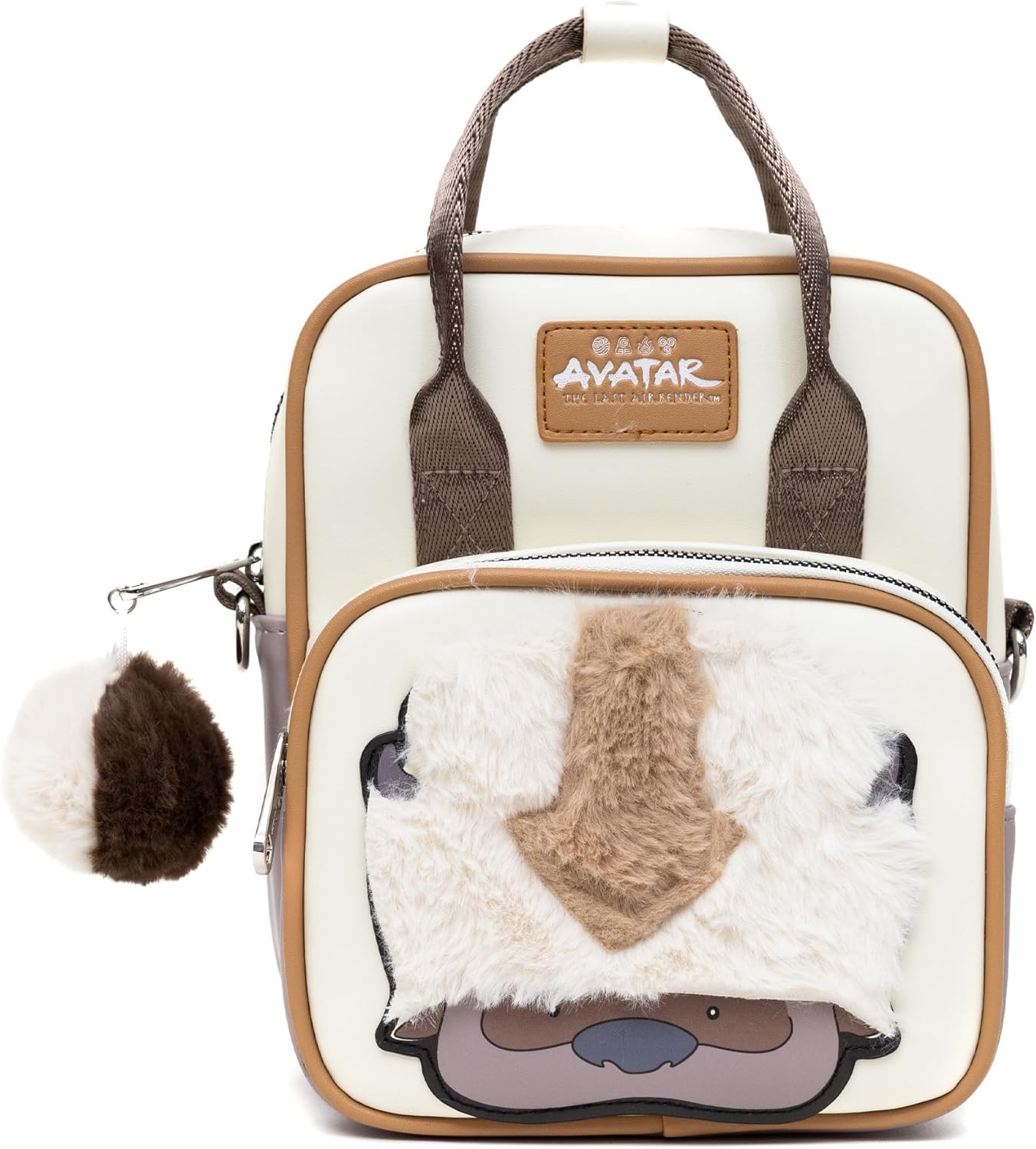 Nickelodeon Vegan Leather Crossbody Backpack for Men and Women with Adjustable Strap, Avatar Appa Furry Face and YIP! YIP! Text Debossed Tan