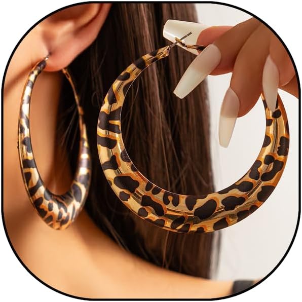 Hoop Earrings for Women Exaggerated Acrylic Hoop Earring Leopard Earrings Fashion Statement Party Jewelry