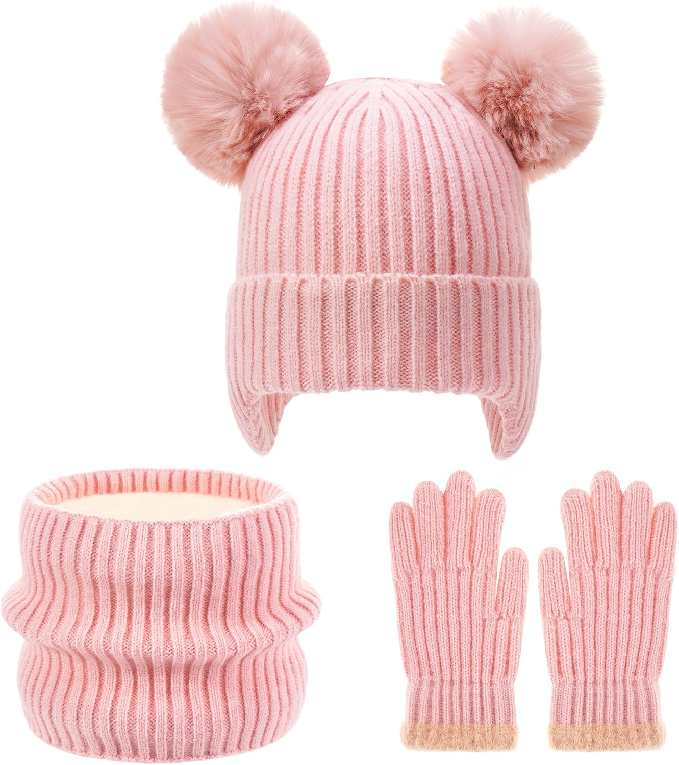FENELY 3Pcs Kids Winter Hat Scarf Gloves Set, Children Knit Warm Ear Cap with Gloves Neck Warmer for Boys Girls 3-10 Years