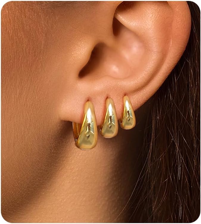Surgical Steel Small Huggie Hoop Earrings for Women Set,14K Gold Plated Hypoallergenic Lightweight Earrings, Waterproof Non-Tarnish Circular Huggies for Multiple Piercings