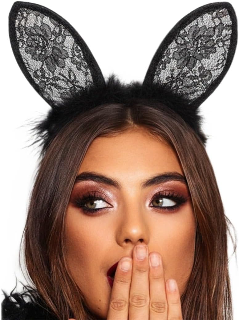 CAKURE Bunny Ears Headband Black Lace Rabbit Ears Headbands Masquerade Halloween Costume Hair Accessories for Women