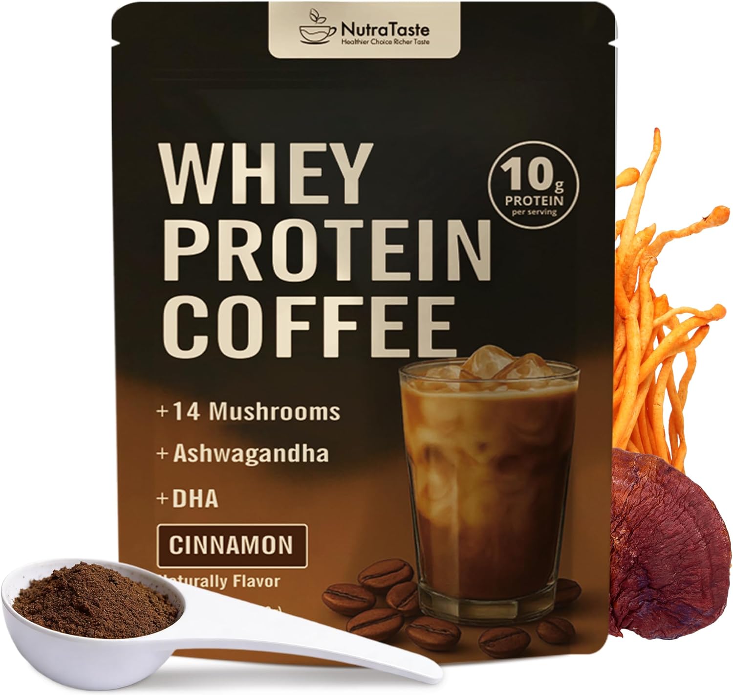 - ADDED BENEFITS: This protein powder with caffeine features a 14-mushroom adaptogenic blend with Reishi & Lion’s Mane, paired with L-Theanine and Ashwagandha to support calm focus and daily resilience. DHA complements everyday brain health support, while Inulin prebiotics help support digestive comfort. Finished with Ceylon cinnamon, this protein coffee drink offers a smooth, enjoyable taste as a functional alternative to ordinary coffee protein powder