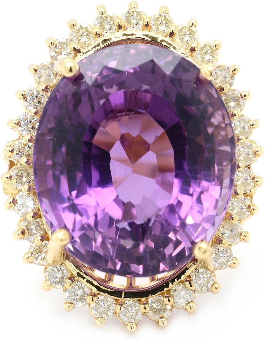 Luxury 14K Yellow Gold Oval Amethyst and Diamond Ring, 20.73ct Purple Amethyst with 30 Natural Round Brilliant Diamonds, Halo Setting