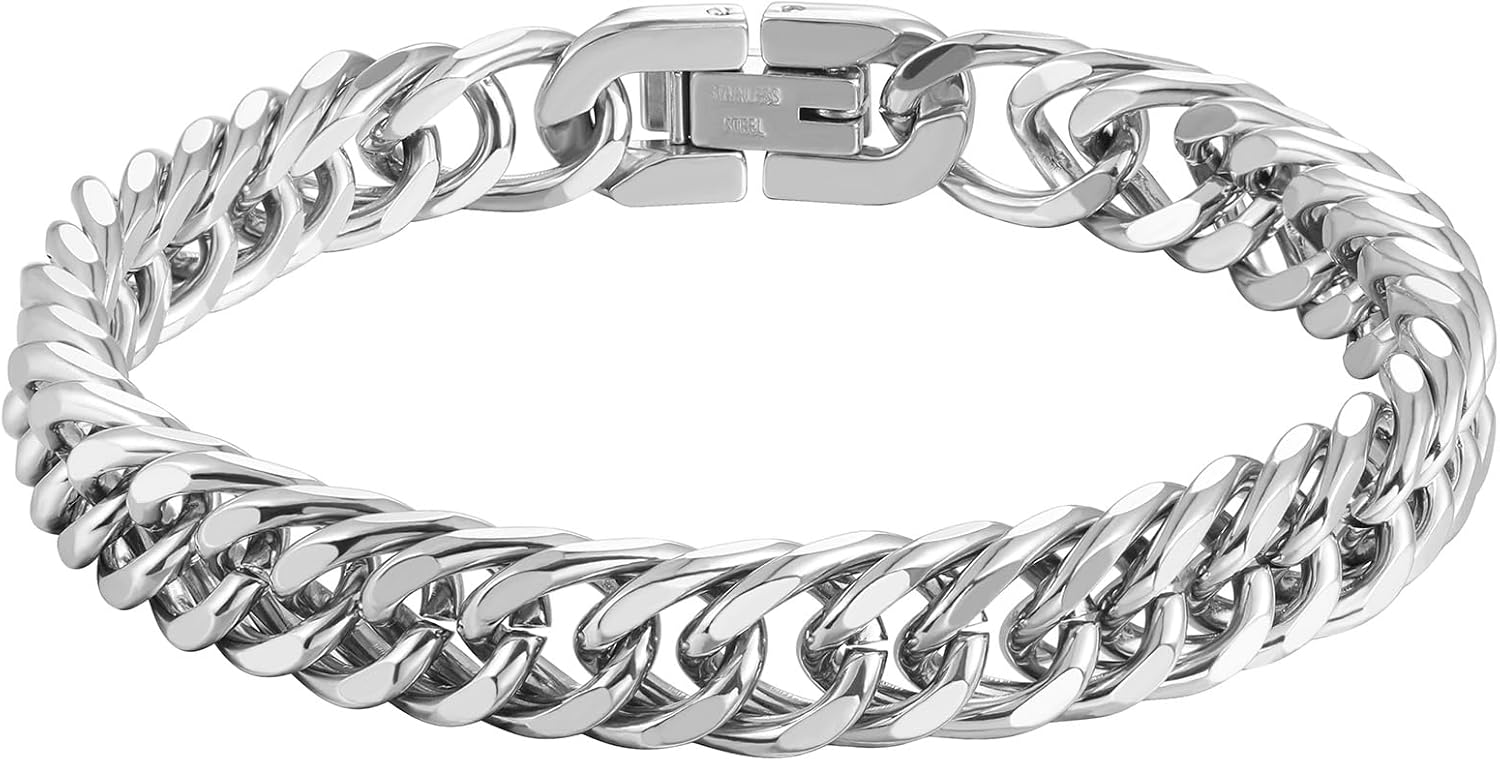 INBLUE Mens Bracelet Stainless Steel Curb Link Chain Bracelet for Men Silver Gold Black Chain 8mm/12mm/17mm Width Hip Hop Jewelry Gift for Boyfriend 3 Lengths 7.5/8.2/9.0 Inches