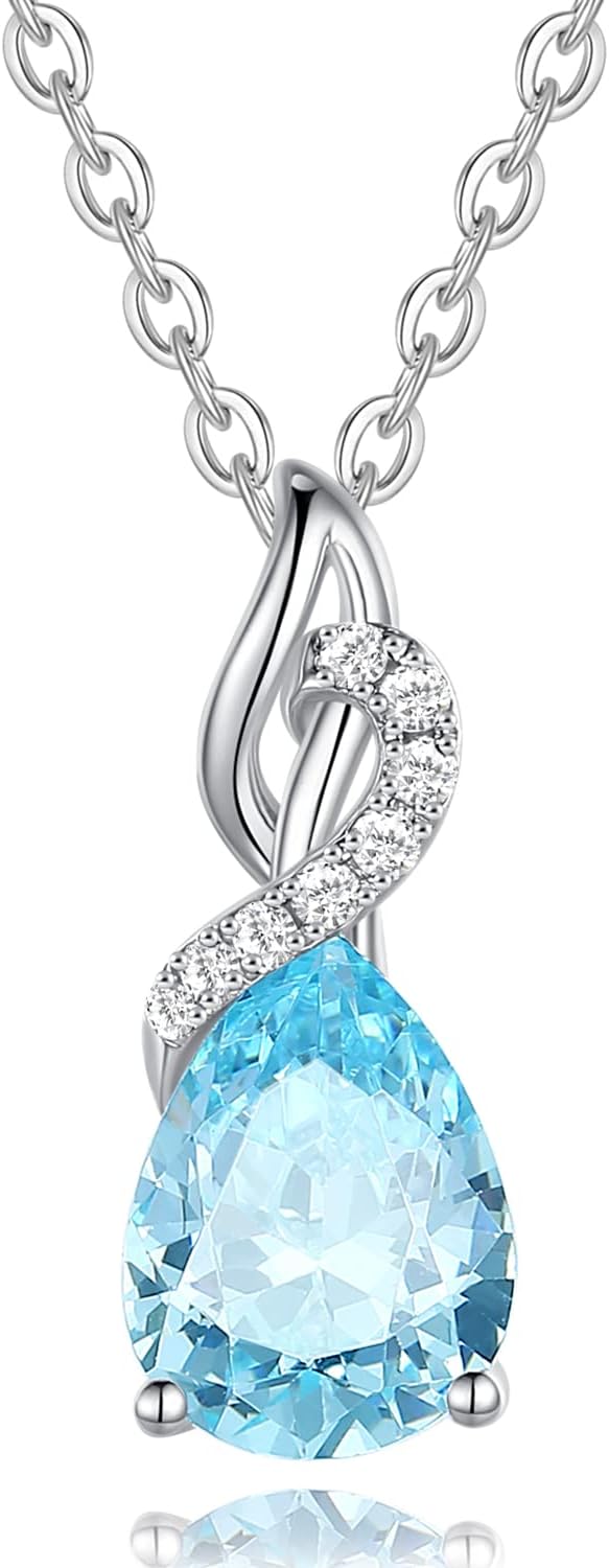 FANCIME 14K Solid White Gold Teardrop Pendant with Diamond Birthstone Necklace