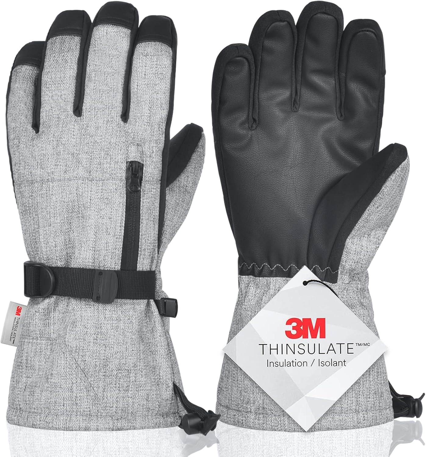 - 【More Features】The waterproof zippered pocket for easy carrying of cards, keys, cash or other small items. The anti-lost buckles connect the gloves together when not in use, preventing one of them from being lost. The wrist strap can be easily adjusted to fit your tightness, preventing gloves from falling off and wind and snow from entering.