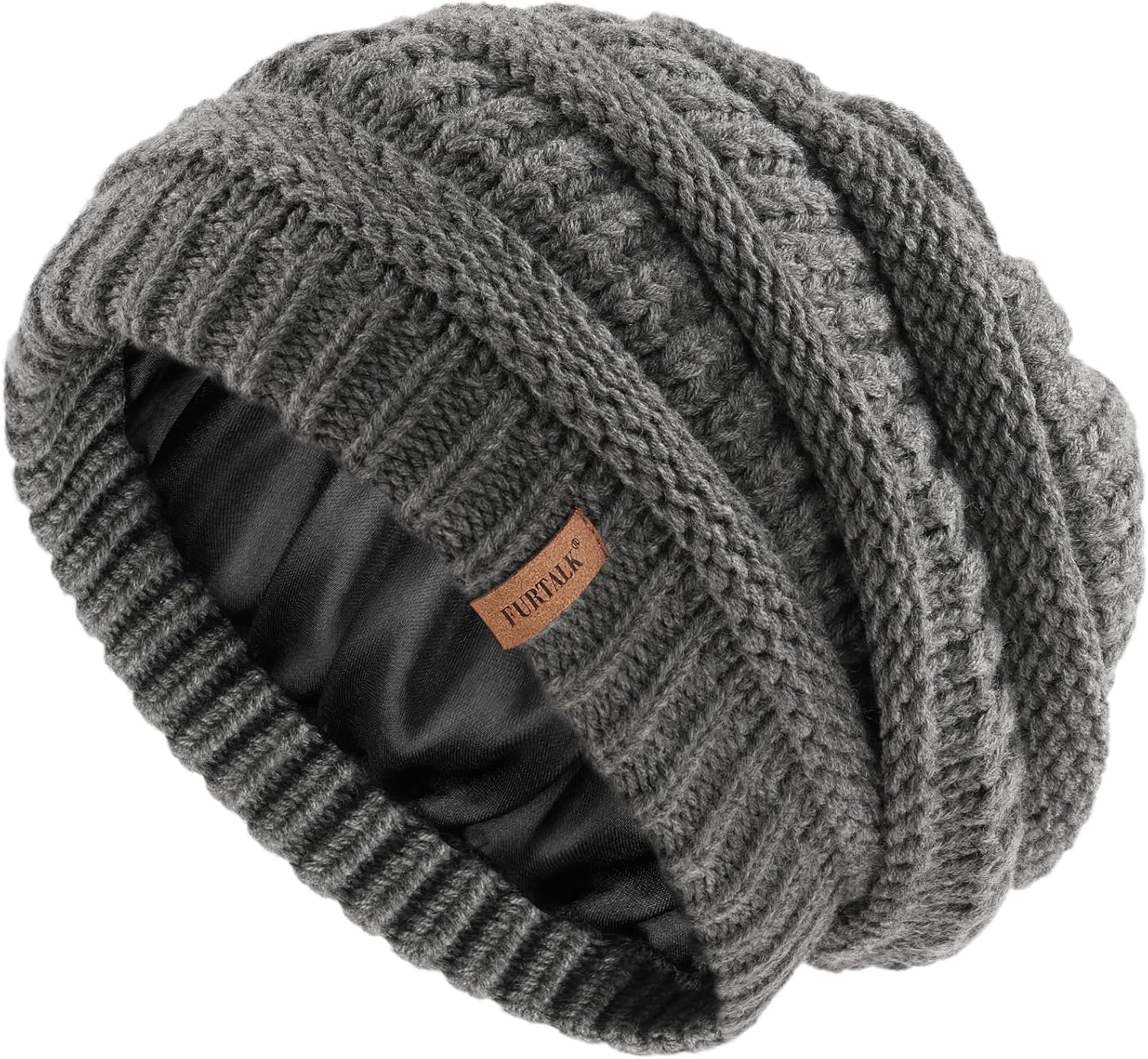 FURTALK Womens Satin Lined Knit Beanie Slouchy Winter Hats Skull Soft Warm Cap
