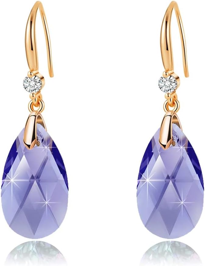 Austrian Crystal Teardrop Dangle Drop Earrings for Women 14K Gold Plated Hook Earring Hypoallergenic Jewelry Gifts for Women Girls