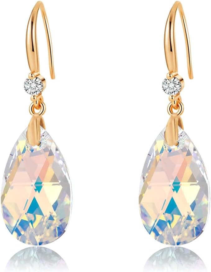 Austrian Crystal Teardrop Dangle Drop Earrings for Women 14K Gold Plated Hook Earring Hypoallergenic Jewelry Gifts for Women Girls