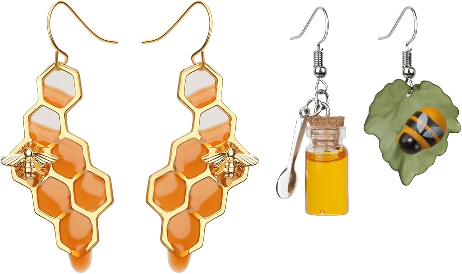 Bumble Bee Earrings-Honeycomb Earrings For Women -Honey Jar Earrings Asymmetrical Earrings Bee Costume Women