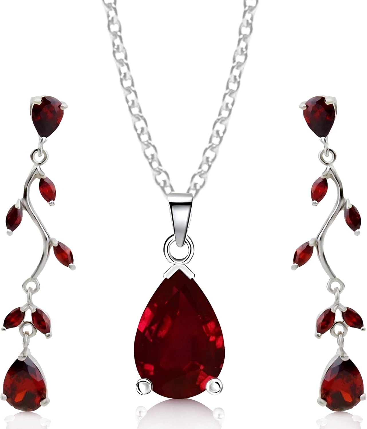 Crystalline Azuria Jewelry Sets Zirconia Crystals Teardrop Necklace and Earrings Set Costume Jewelry for Women Wedding Party White Gold Plated