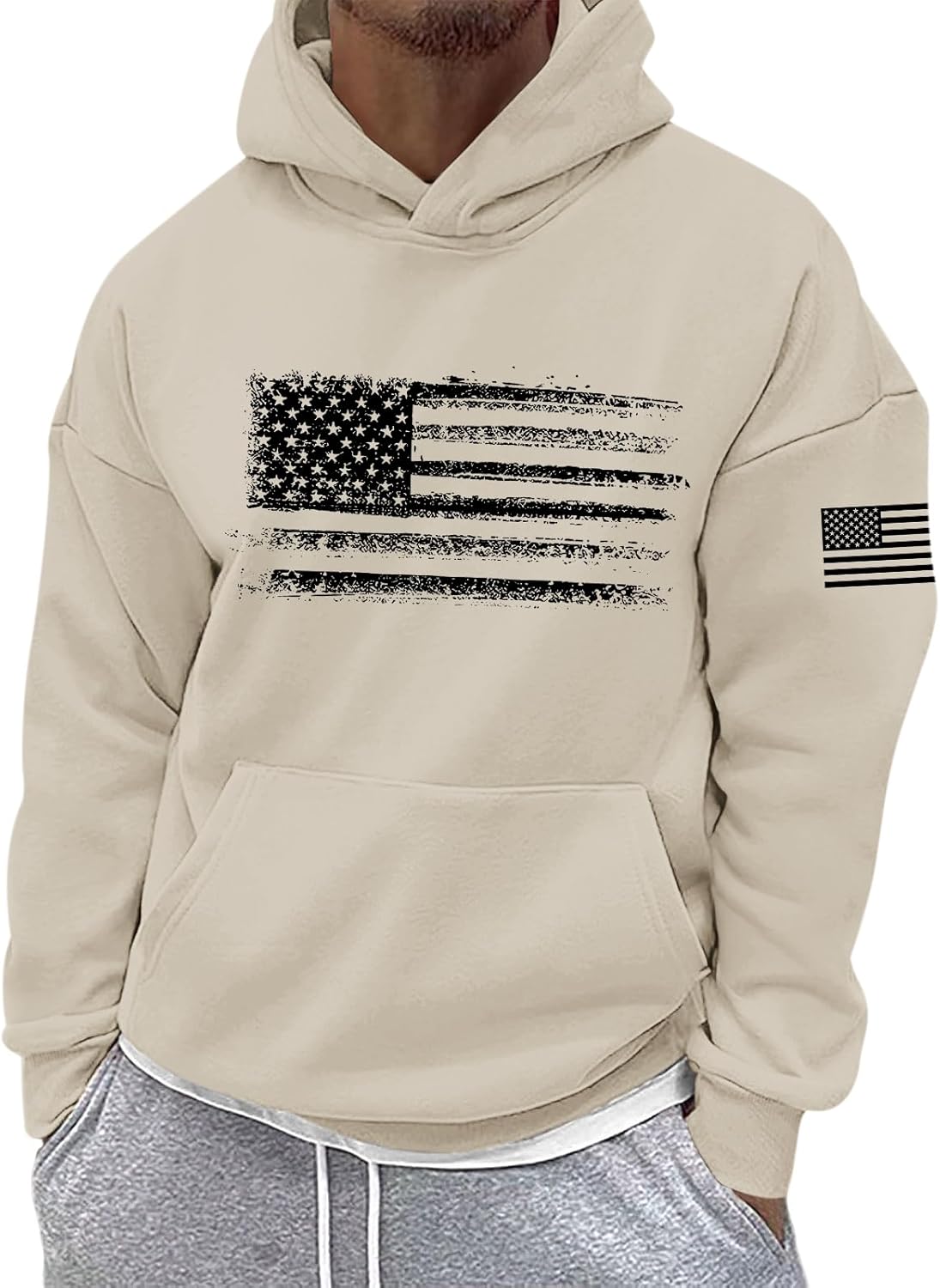 American USA Flag Hoodie for Men Patriotic Vintage Graphic Hooded Sweatshirts Long Sleeve Pocket Pullover Tops