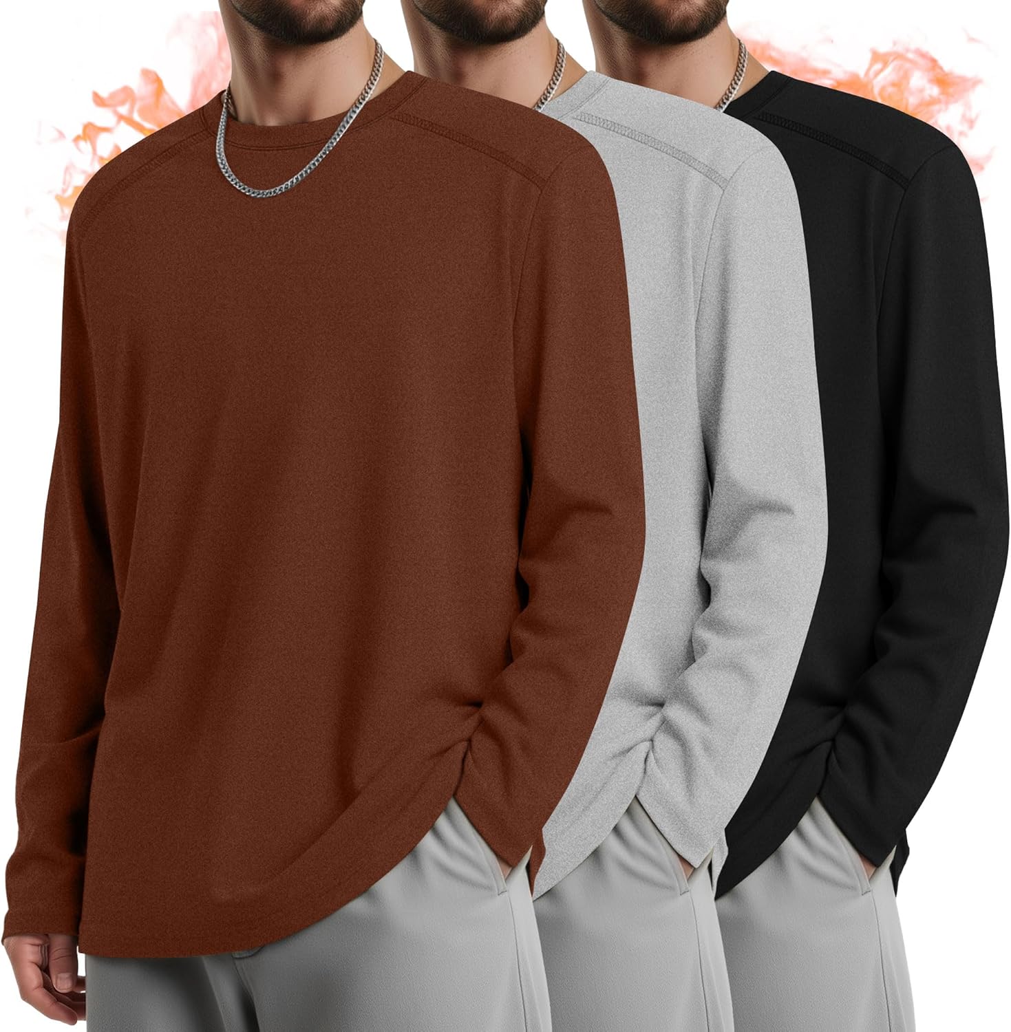 3 Pack Men's Big and Tall Thermal Shirts, Fleece Lined Long Sleeve Tees Warm Crew Neck Undershirt Tops