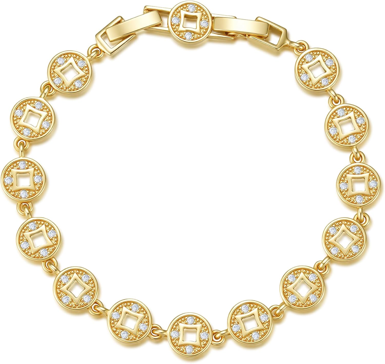 Gold Plated Geometric Openwork Bracelet for Women, Dainty Square Cut-Out Link Chain with Cubic Zirconia for Everyday Elegance