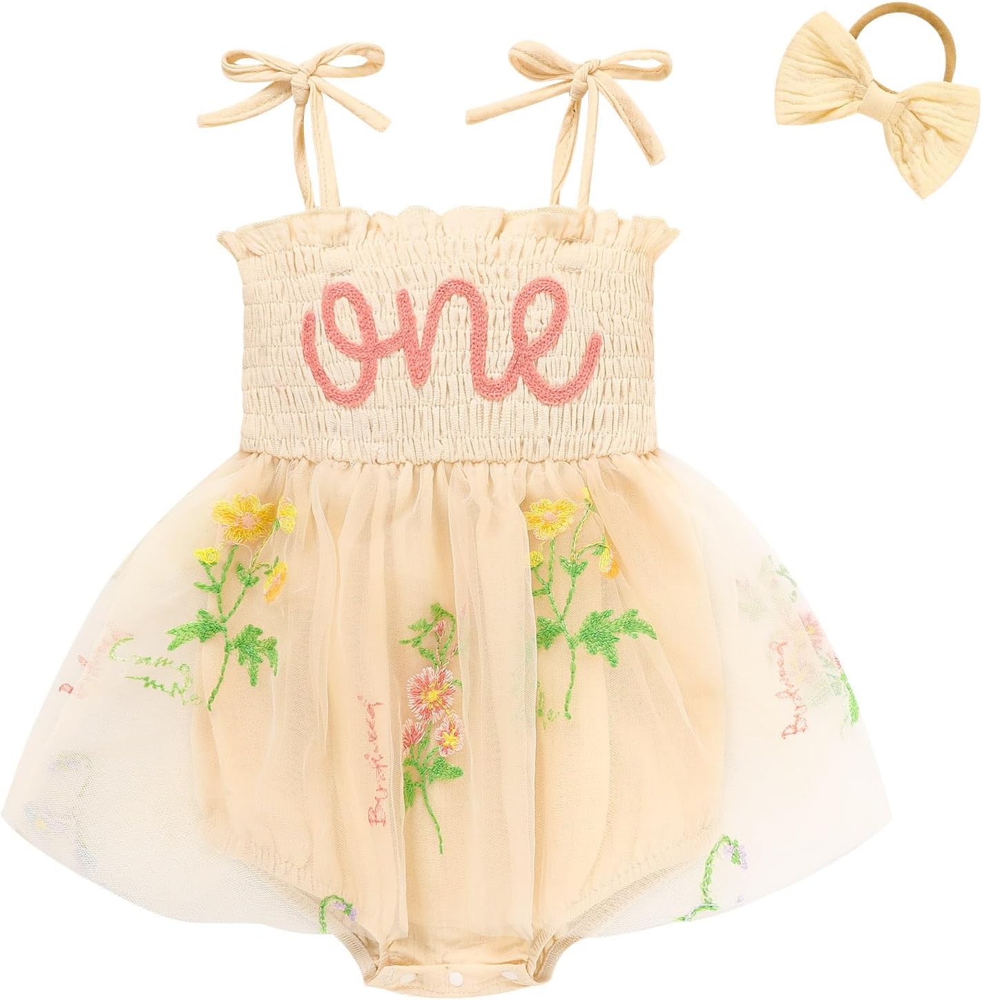 Baby Girl 1st Birthday Clothes One Year Old Tulle Romper Sleeveless Bodysuit Cake Smash Outfits