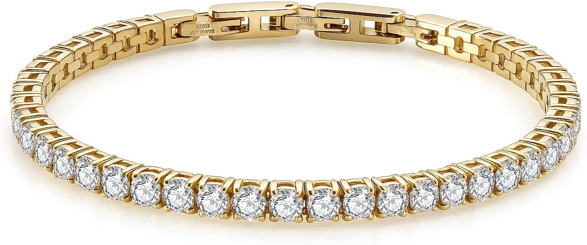 Tennis Bracelet for Women Men, 14K Gold Plated Round 3mm/4mm/5mm AAAA+ Cubic Zirconia CZ Dainty Classic Adjustable Stainless Steel Bracelets Festival Wedding Jewelry Gift