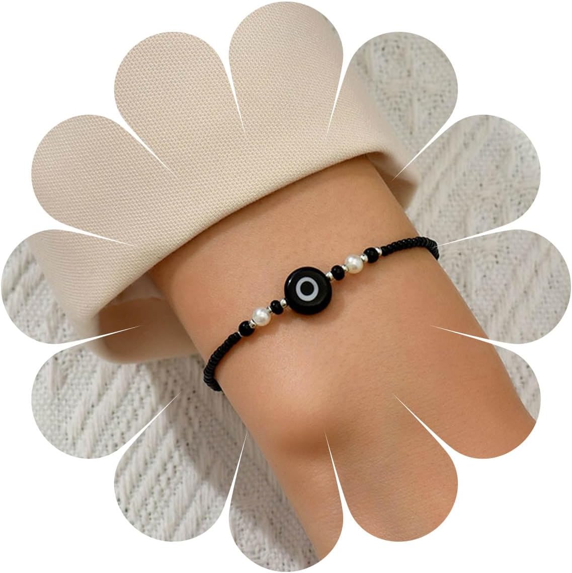 Vintage Evil Eye Bracelet Black Seed Bead Bracelet Rice Bead Hand Chain Devil Eye Chain Bracelet Jewelry for Women