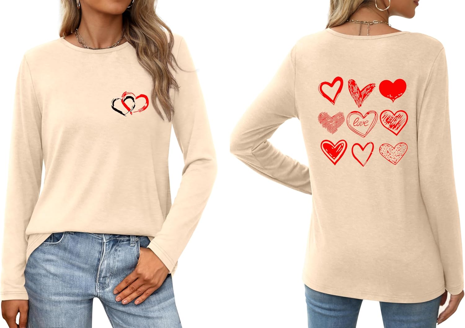 Valentines Outfits for Women Plus Size Love Heart Shirts Long Sleeve Valentine Tee Tops Clothes for Teen Girls