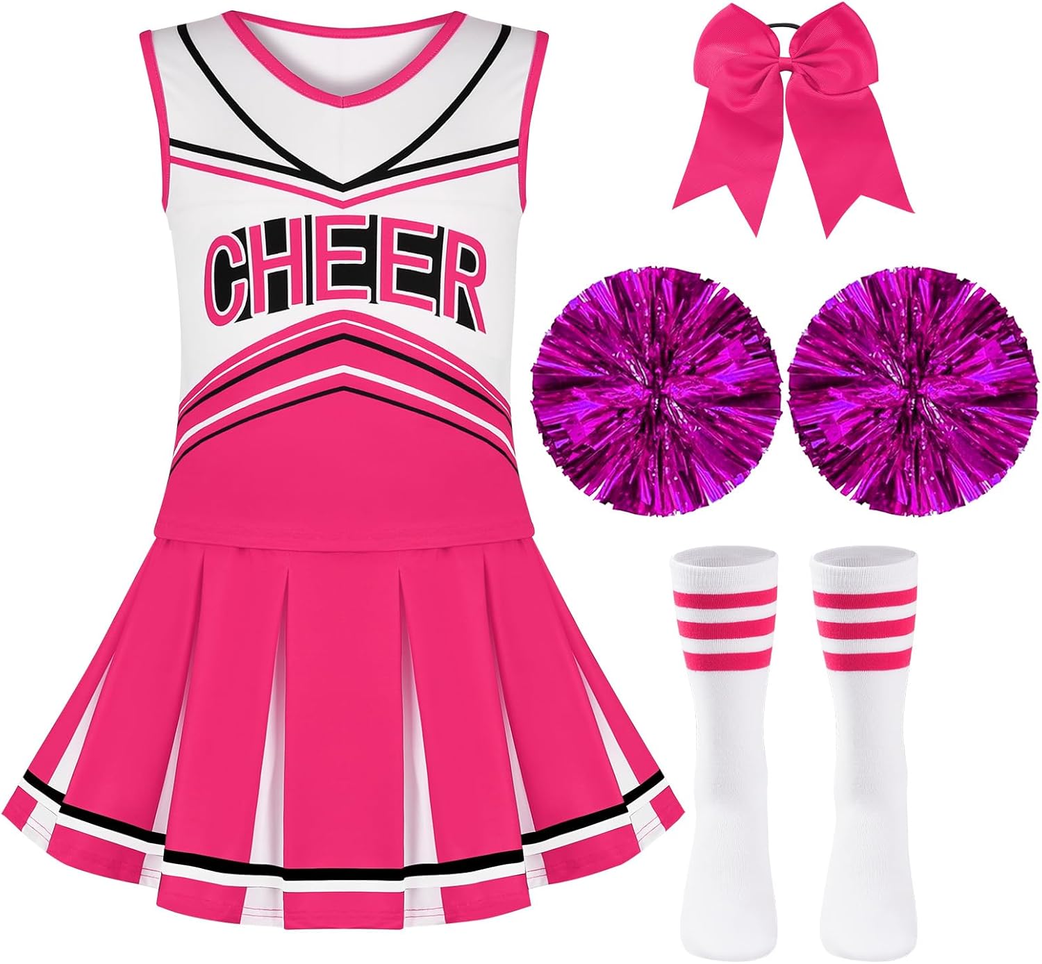 Cheerleader Costume for Girls 6-12Y Halloween Cheerleading Outfit 5Pcs Cheer Uniform Fancy Dress for Party/Sports Day