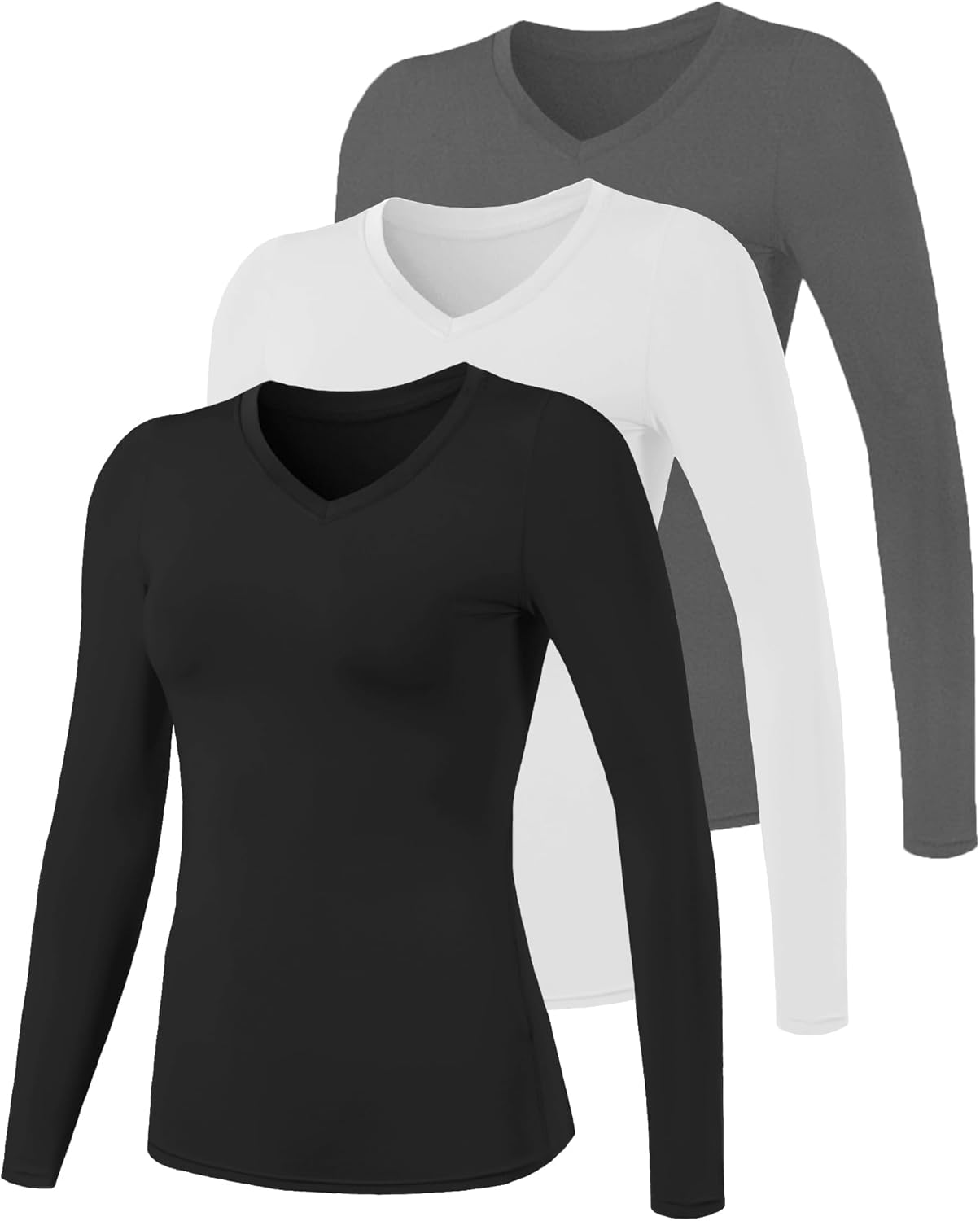 Women's Workout Shirts V Neck Long Sleeve Athletic Compression T Shirt UPF 50+ Sun Dry-Fit Yoga Base Layer Gym Running Top