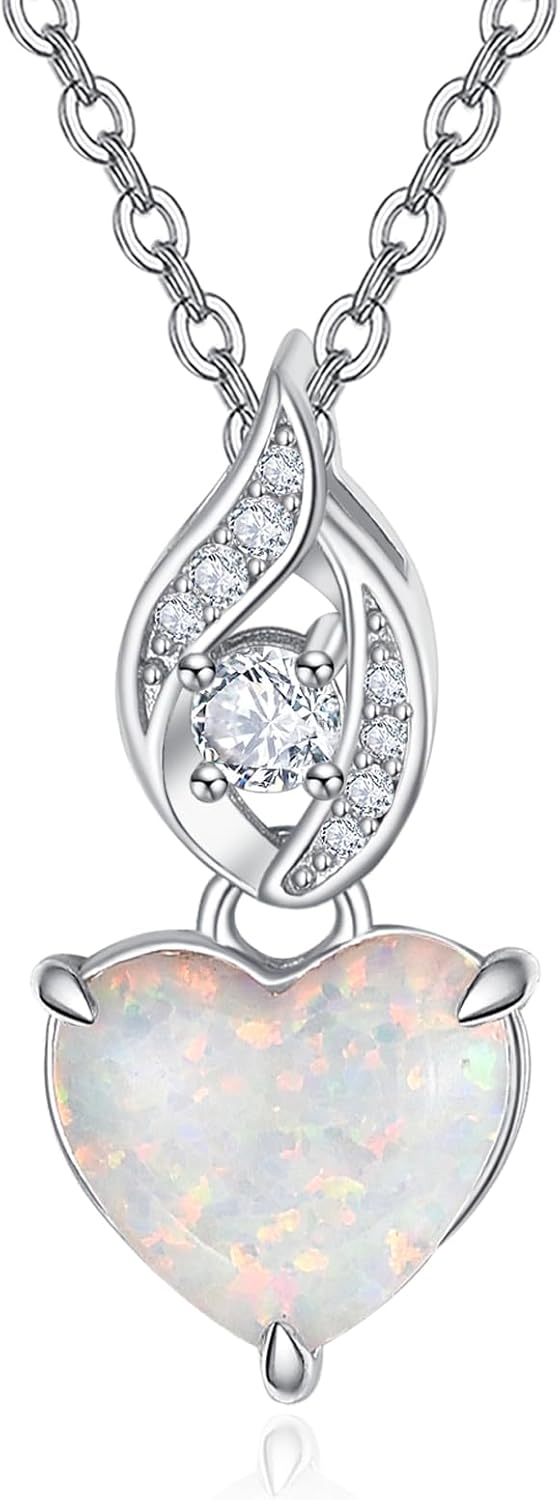 AENEAS Created Opal Necklace Sterling Silver Dainty Heart Pendant Jewelry Gifts for Anniversary Birthday Christmas for Women Mom Wife