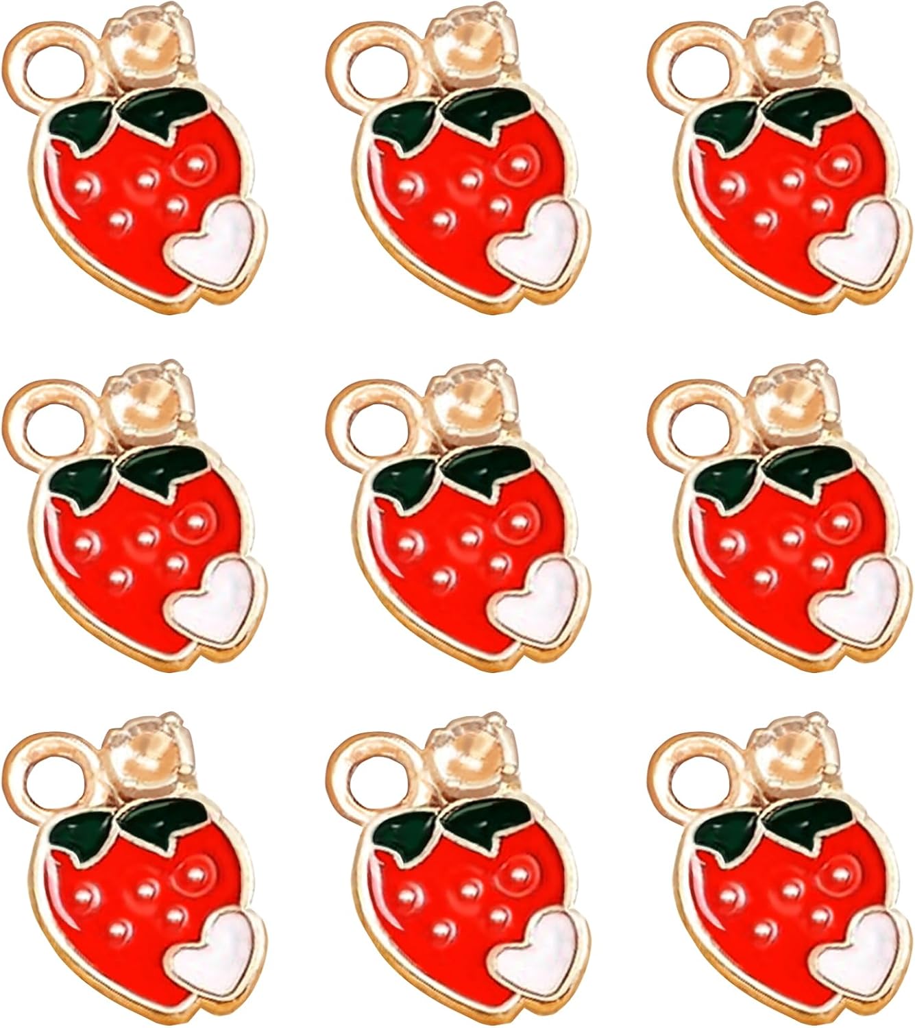 50 Pcs Strawberry Charms, Sweet Like Strawberry Shaped Mini Charms Pendant SiegYma DIY Making Necklace Bracelet Women Gift Fruit Accessories Decoration