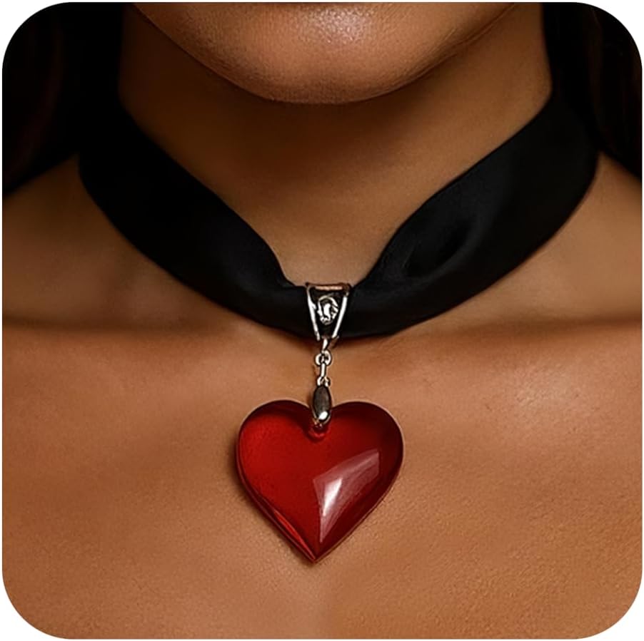 Black Velvet Acrylic Cross Heart Choker Necklace for Women, Crystal Collar Gothic Y2k Necklaces Halloween Christmas Valentines Accessories Gift