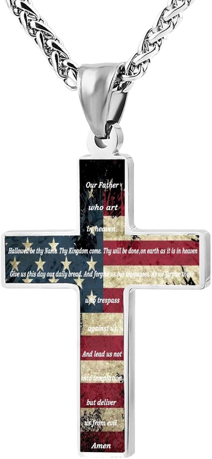 American Flag Bible Cross Pendant Necklace Christian Religious Jewelry Men's Women's