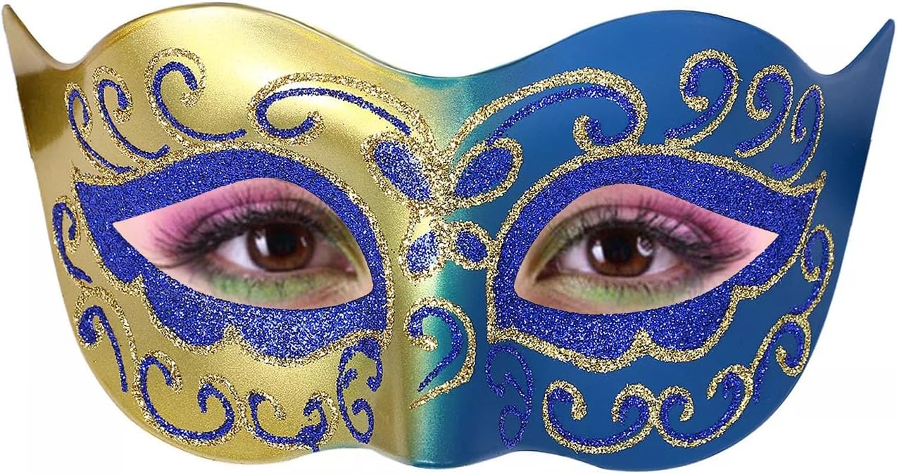 Masquerade Mask for Women Men Couple Venetian Mask Vintage Retro Mask for Halloween Costume Party Mardi Gras (Gold Blue)