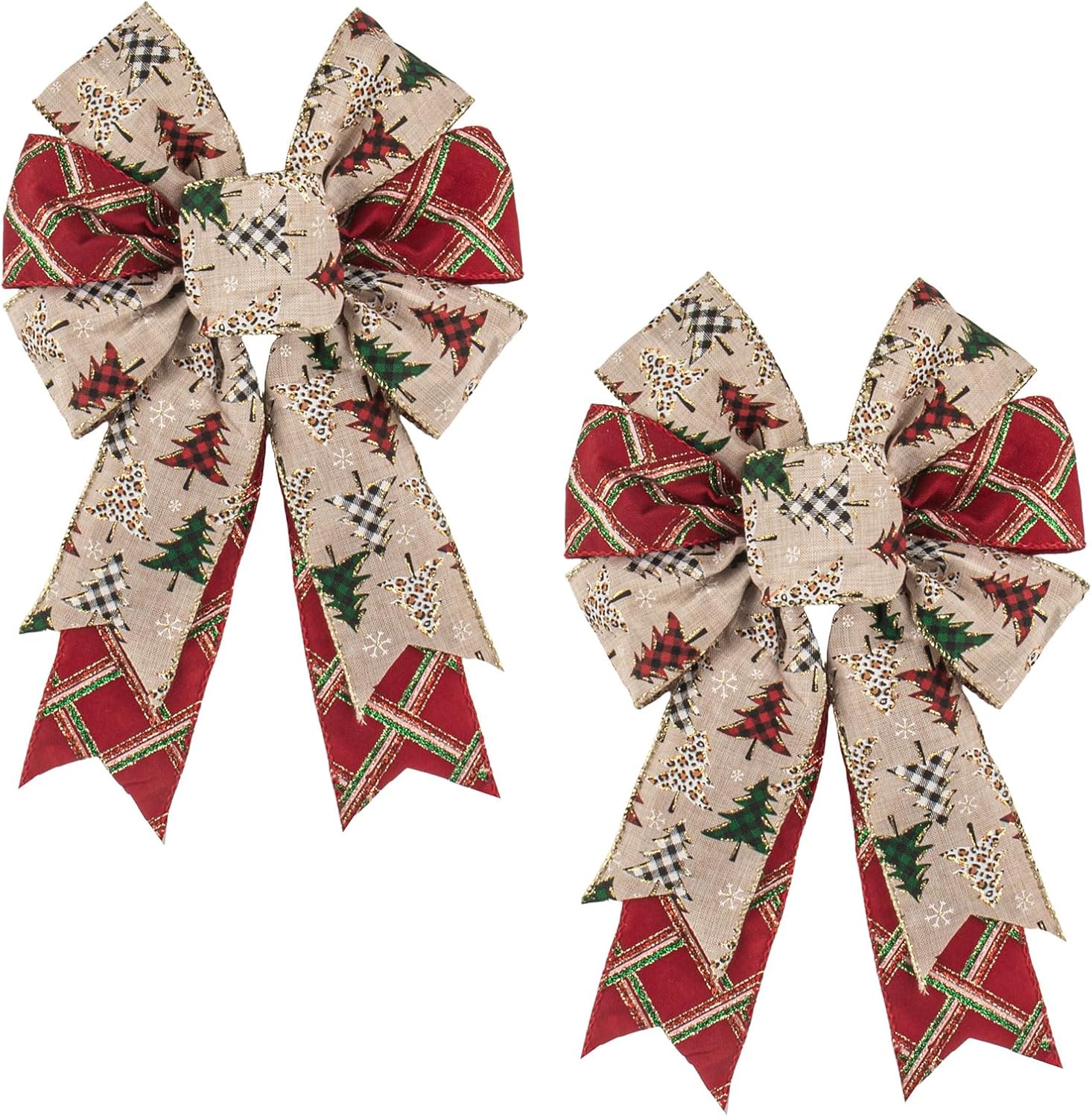 - Dimension: The overall Christmas wreath fabric bow size is 13 inch × 8.5 inch, decorated with Christmas trees and glitter red white and green plaid, ideal for Christmas decoration. Package includes: 2 × small Christmas bows.