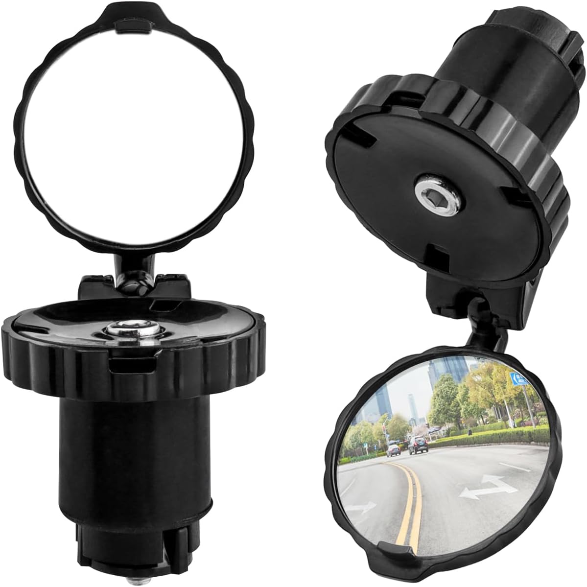 - Easy to Install - Simply insert to the end of the handlebar, clockwise tighten the center screw with allen wrench to fix the mirror in place, and then open the mirror cover and adjust the angle you need.