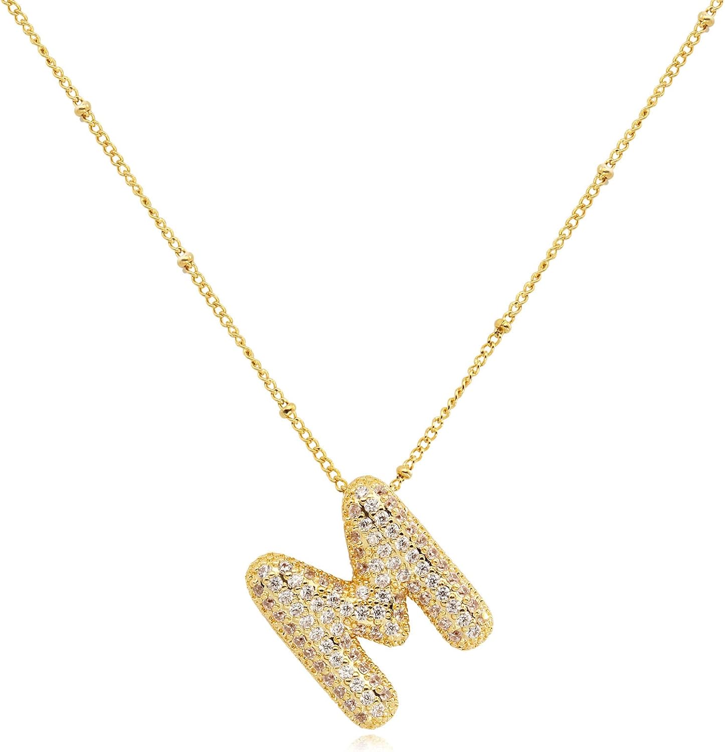 FUTIMELY Women's Gold Initial Necklace | Puffy Alphabet Pendant | Personalized Name Gifts | Trendy Balloon Chain With Zircon Crystals
