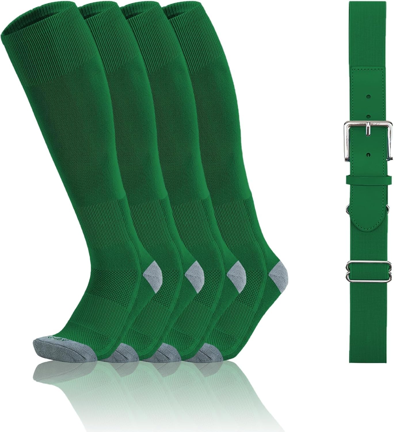 QBK 2-16Y Toddler Baseball Socks And Belt Youth Softball Tee Ball Combo Set for Boy Girl (2 Pairs of Socks & 1 Belt)