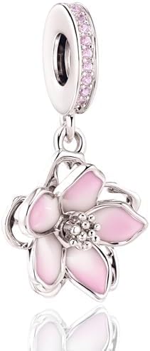 PARCOM Charms S925 Sterling Silver Fits for Pandora Bracelets perfect Valentine's Day gift, Cherry Blossom Dangle Beads Jewelry for Women