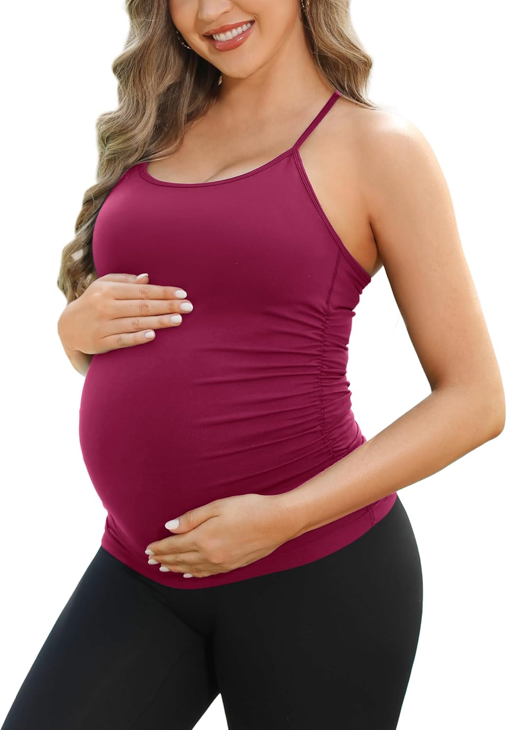 ATTRACO Women's Maternity Tank Tops with Built in Bra Seamless Y Back Side Ruched Pregnancy Tank Top
