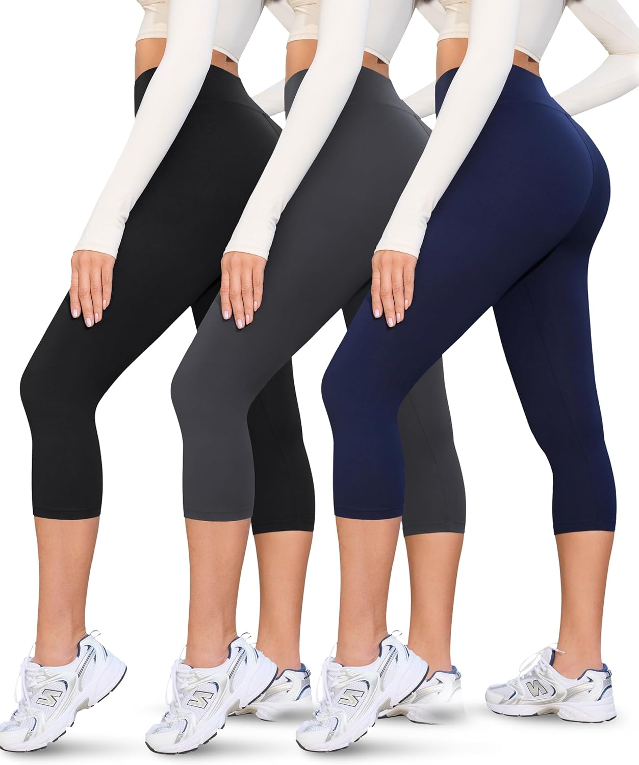 VALANDY Creamlush 3 Pack Capri Leggings for Women-High Waisted Comfy Stretchy Soft Yoga Casual Lounge Pants