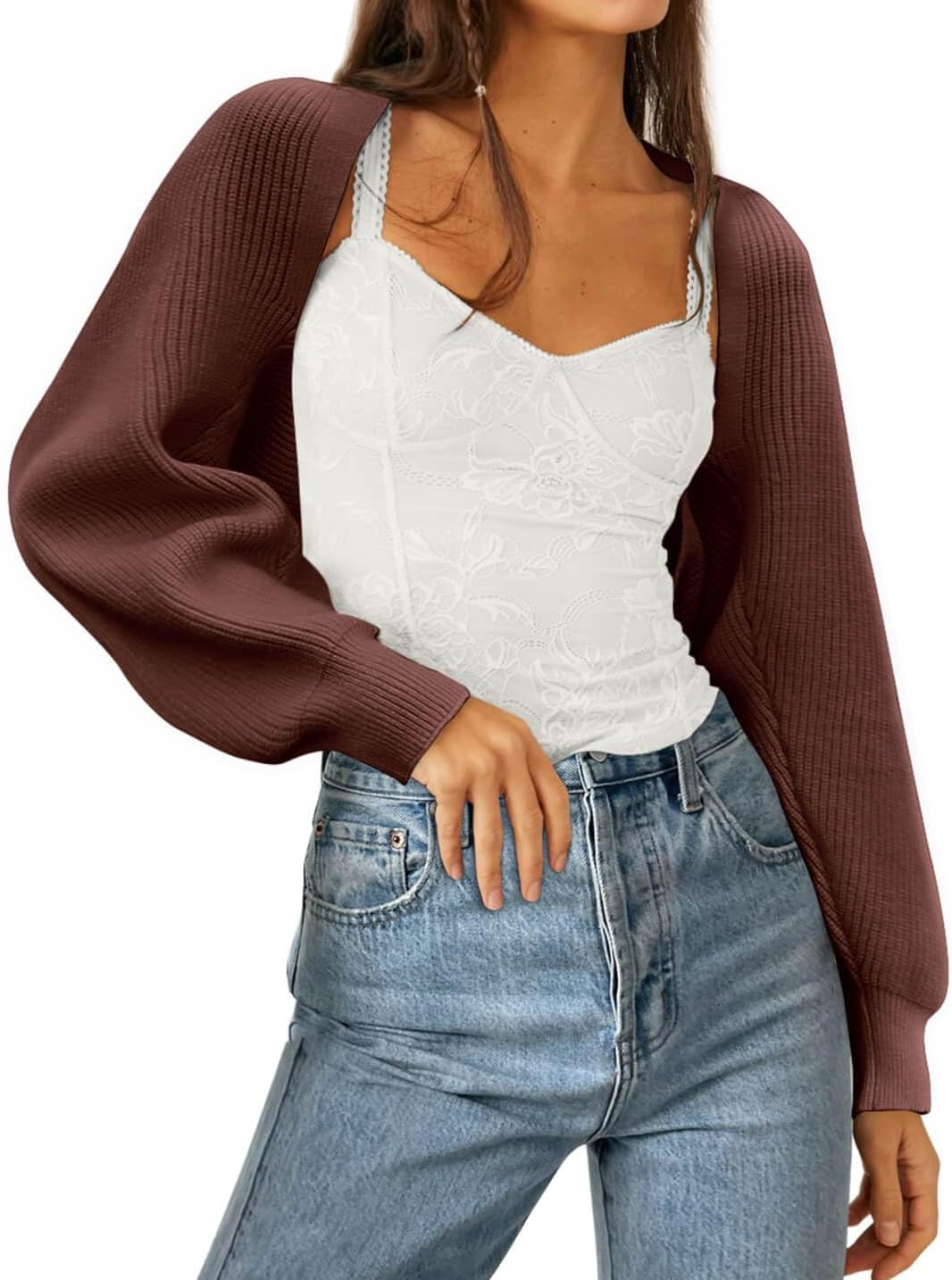 Zwurew Women's Bolero Shrug Sweater 2026 Knitted Long Sleeve Open Front Cropped Cardigan Shrugs Sweaters Y2K Tops
